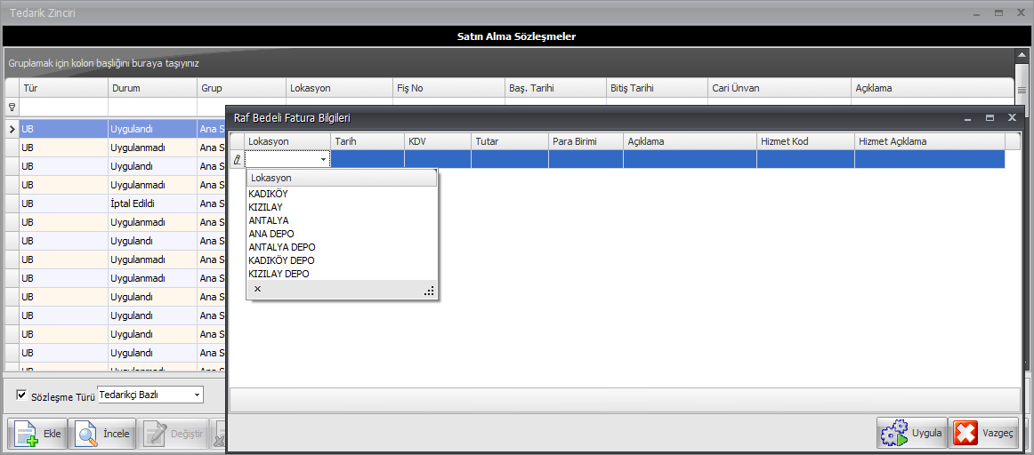 Ancak szöleşmenin herhangi bir görev ataması yapılmadan direkt olarak zamanı gelince uygulanması isteniyorsa da Uygula butonuna tıklanarak tedarikçi bazlı sözleşme kaydedilebilir.