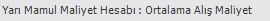 Yarı mamullar içinse, reçetelerde tanımlanmış olan alım faturalarında yer alan, ortalama alış maliyeti esas alınacaktır.